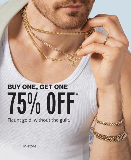 Shop in store and buy one, get one 75% off gold for a limited time.