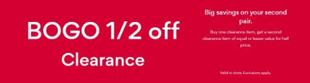 Hurry in and buy one clearance item, get a second clearance item of equal or lesser value for half price in store.