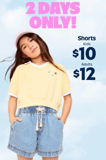 $12 Shorts for Adults and $10 for Kids